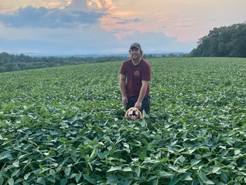 Our first crop at our home farm was soybeans. Pictured above is Brad standing in the soybeans in July of 2021. These soybeans were harvested in the Fall of 2021 and our horse quality hay was planted in these fields.