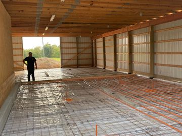 Our improvements to the farm started in Brad's workshop. This barn was only partially complete when we purchased the farm and we added a concrete floor. Pictured above is Brad's workshop prepped for concrete pouring. Brad services the farm vehicles and equipment in this workshop.
