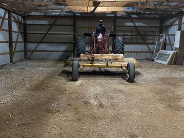 After searching for over a year, we finally found our home farm. We couldn't have done it without help from our family and friends. Pictured above is Brad parking the first piece of equipment we moved in one of the existing barns on the property. That barn hasn't been empty since!