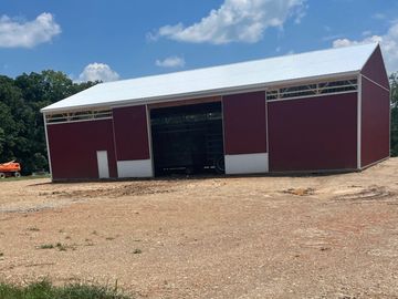 Our next renovation on the farm was to add more storage for the hay we produce. Our new hay storage barn was constructed during the 2022 season and we couldn't love it more. Pictured above is the barn right after construction (we have a bit more grass surrounding the barn now!).